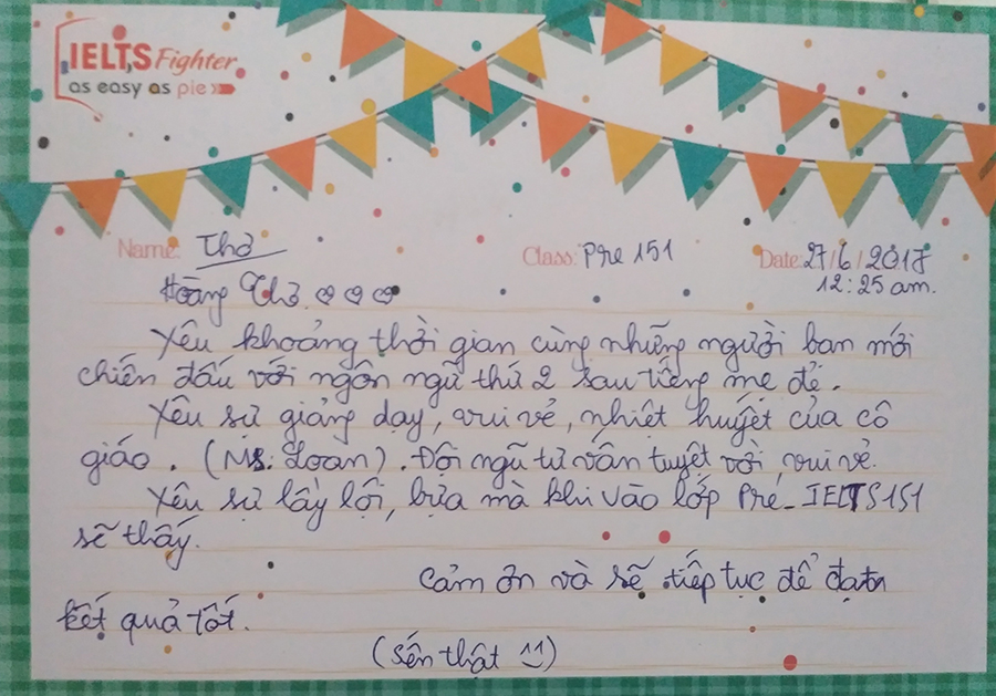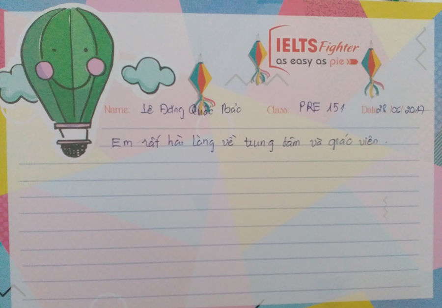 IELTS Fighter cám ơn các em đã lựa chọn Trung tâm và đội ngũ chiến binh nhiệt huyết với tình yêu tiếng Anh luôn rực cháy là người bạn đồng hành trên con đường chinh phục những nấc thang điểm số IELTS!