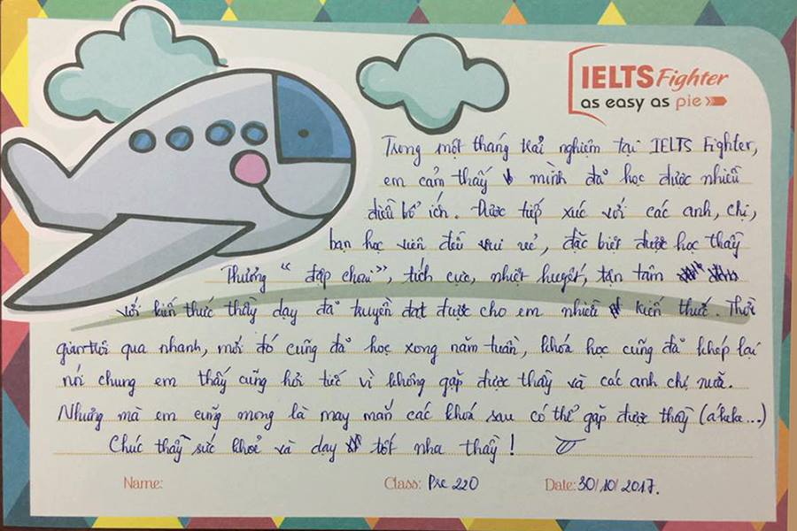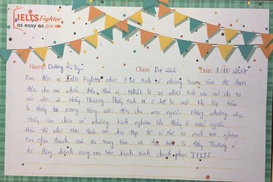 Em xin cảm ơn trung tâm IELTS Fighter đã tạo điều kiện hết sức cho tụi em!