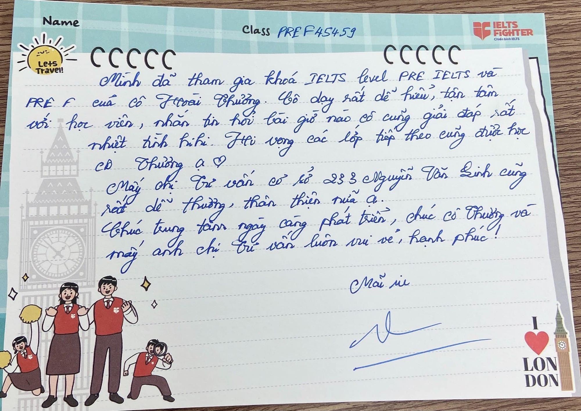 IELTS Fighter xin gửi lời cảm ơn đặc biệt sâu sắc tới các bạn học viên, quý phụ huynh và những người bạn luôn tin tưởng. Hy vọng những dòng tâm sự từ học viên IELTS Fighter sẽ giúp các bạn có thêm động lực học tiếng Anh và thêm tin yêu IELTS Fighter nha!