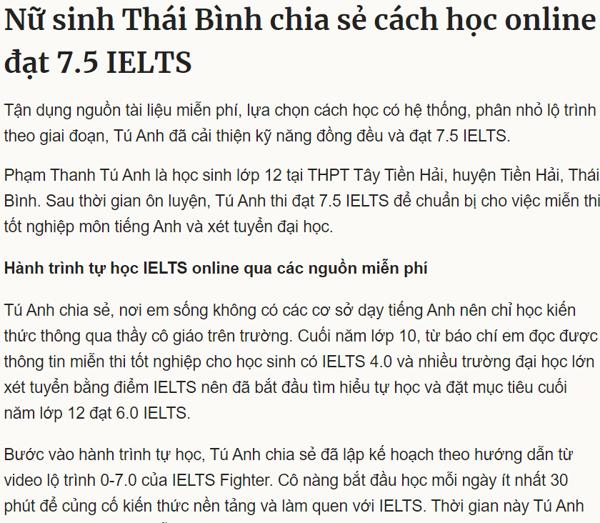 Chi tiết bài chia sẻ của Tú Anh: https://vnexpress.net/nu-sinh-thai-binh-chia-se-cach-hoc-online-dat-7-5-ielts-4328956.html
