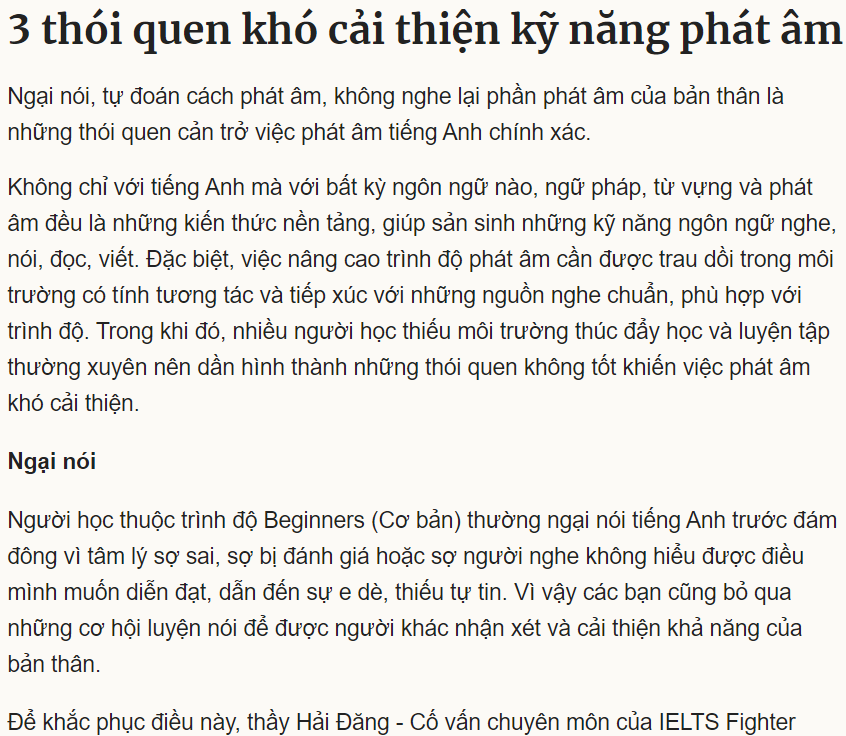 Bài viết chi tiết: https://vnexpress.net/3-thoi-quen-kho-cai-thien-ky-nang-phat-am-4360193.html