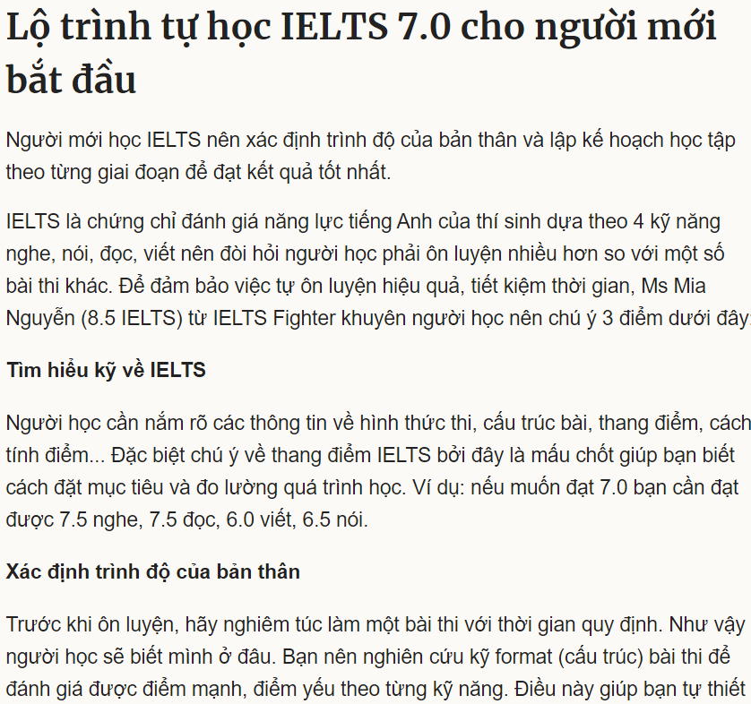 Bài viết đầy đủ: https://vnexpress.net/lo-trinh-tu-hoc-ielts-7-0-cho-nguoi-moi-bat-dau-4387424.html\