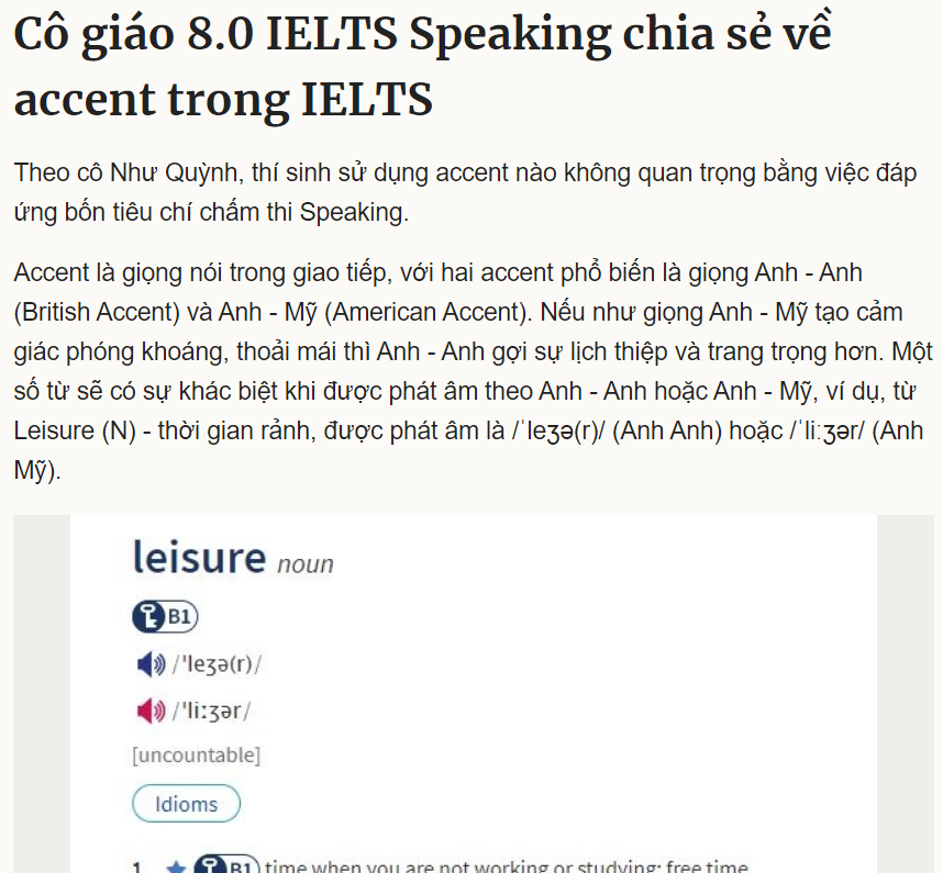 Bài viết đầy đủ: https://vnexpress.net/co-giao-8-0-ielts-speaking-chia-se-ve-accent-trong-ielts-4354237.html