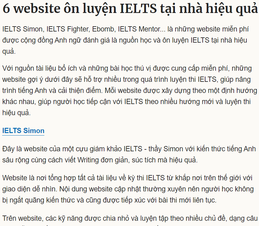 Danh sách đầy đủ: https://vnexpress.net/6-website-on-luyen-ielts-tai-nha-hieu-qua-4302300.html
