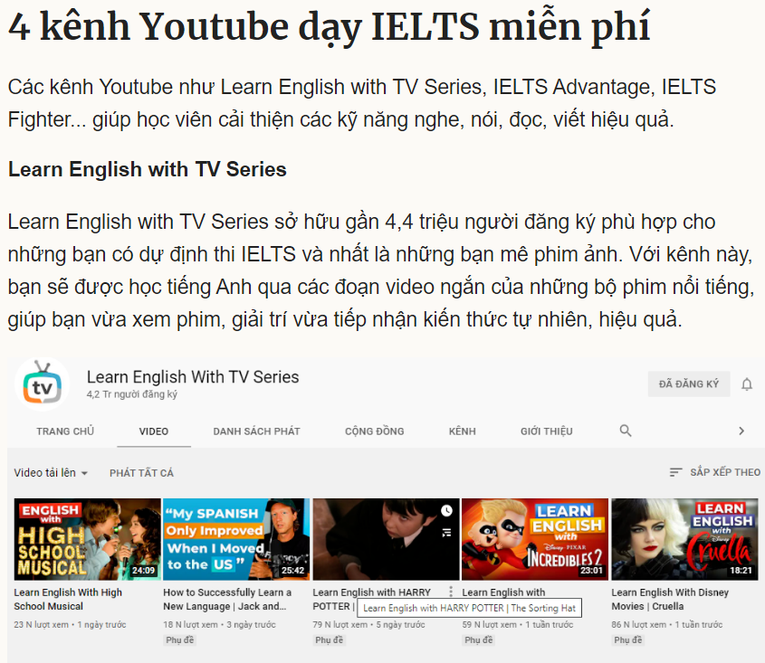 Học IELTS miễn phí trên Youtube
